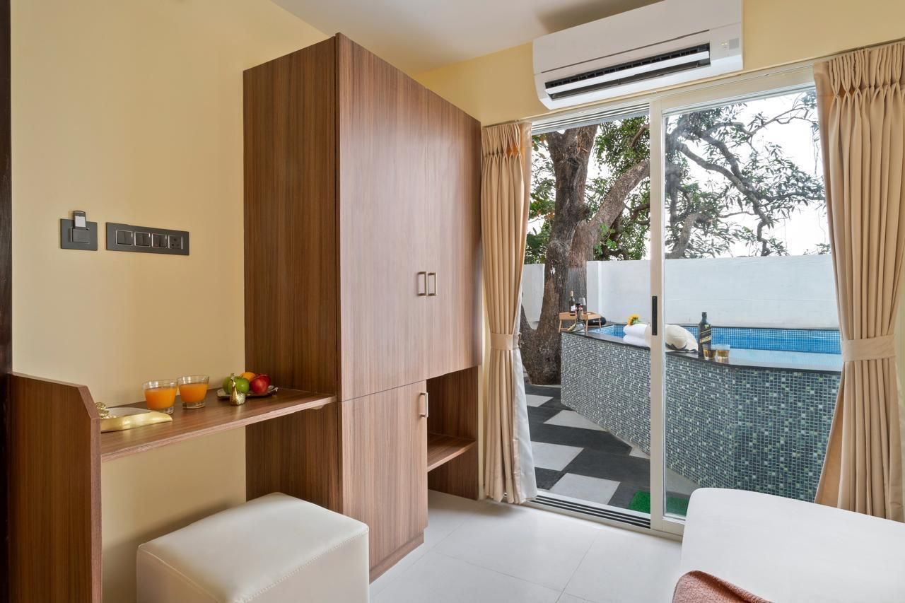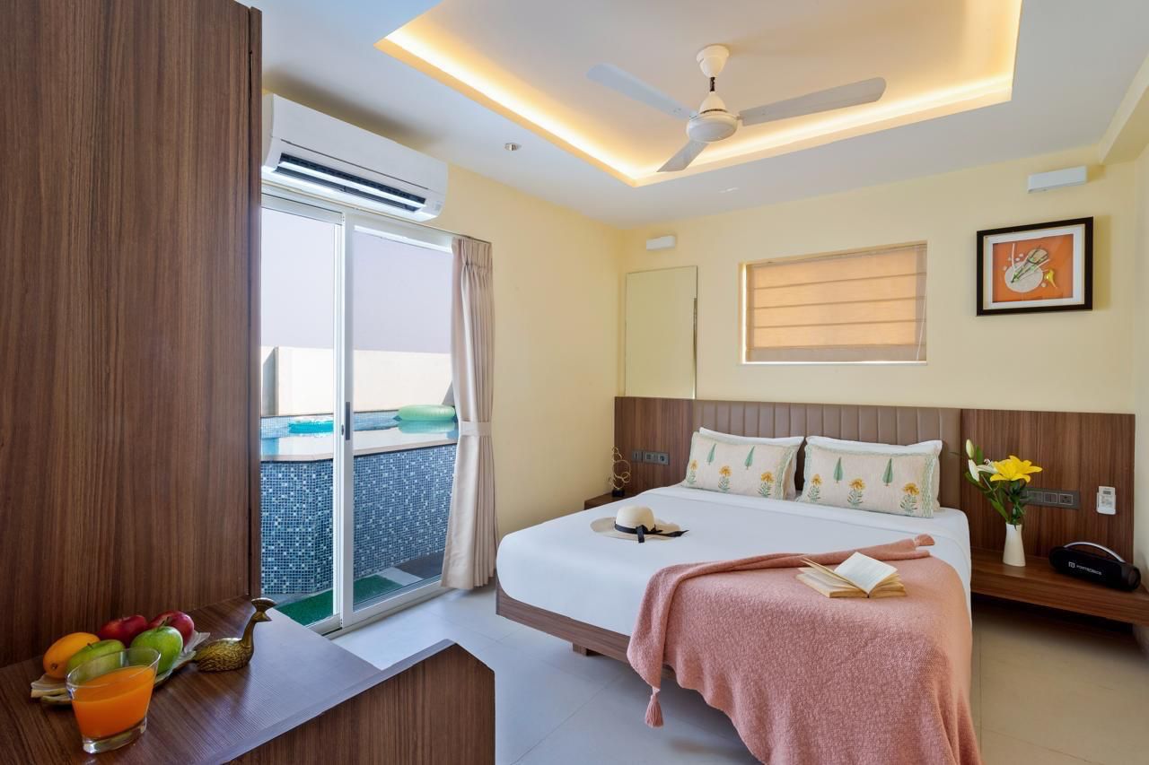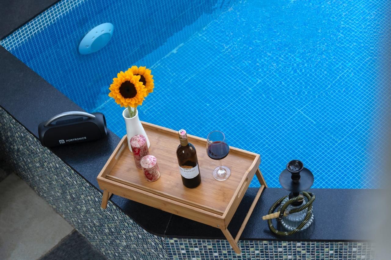 This villa is decorated attractively with modern fittings. The living room has a huge sitting and bar area with a pool view. There is a fully functional kitchen with all facilities that you will need for cooking. A private chef can be arranged on demand (with additional charges) who can cook as per your requirement.